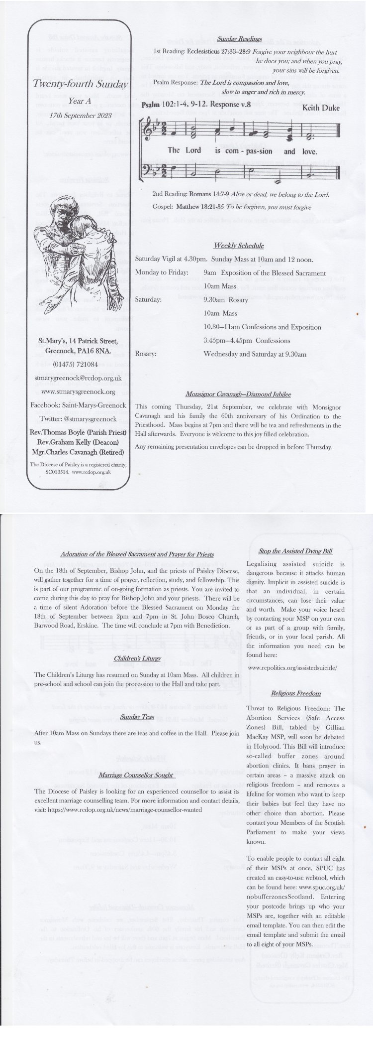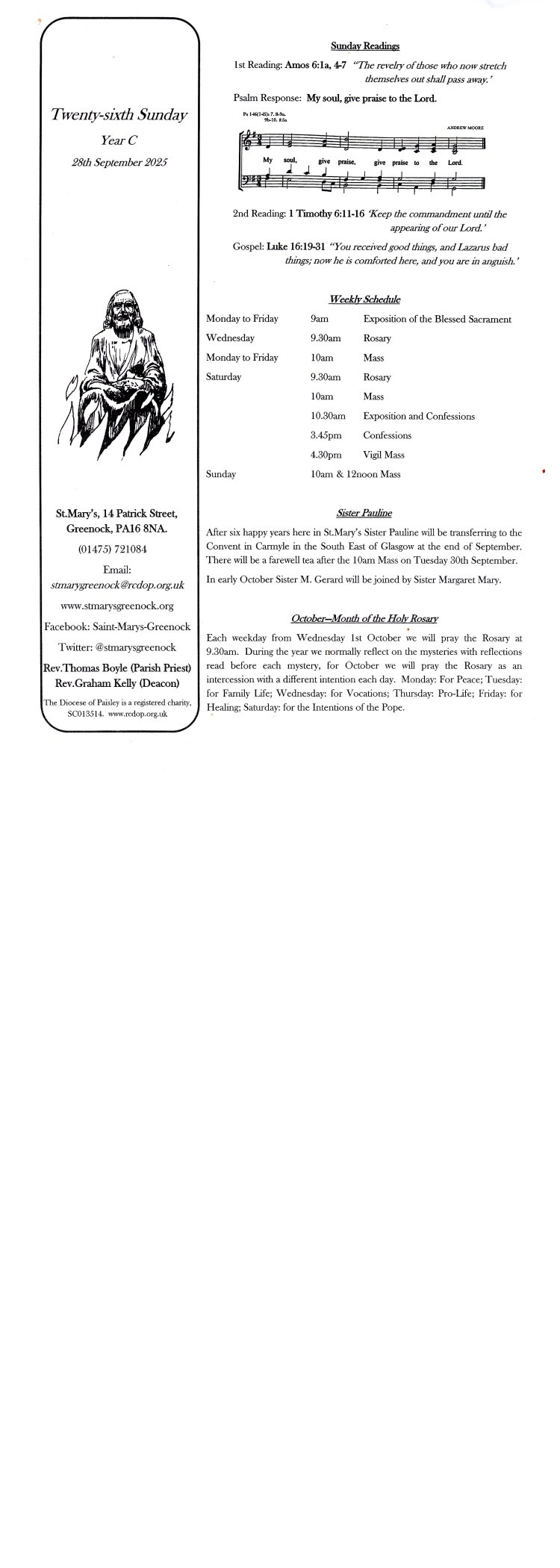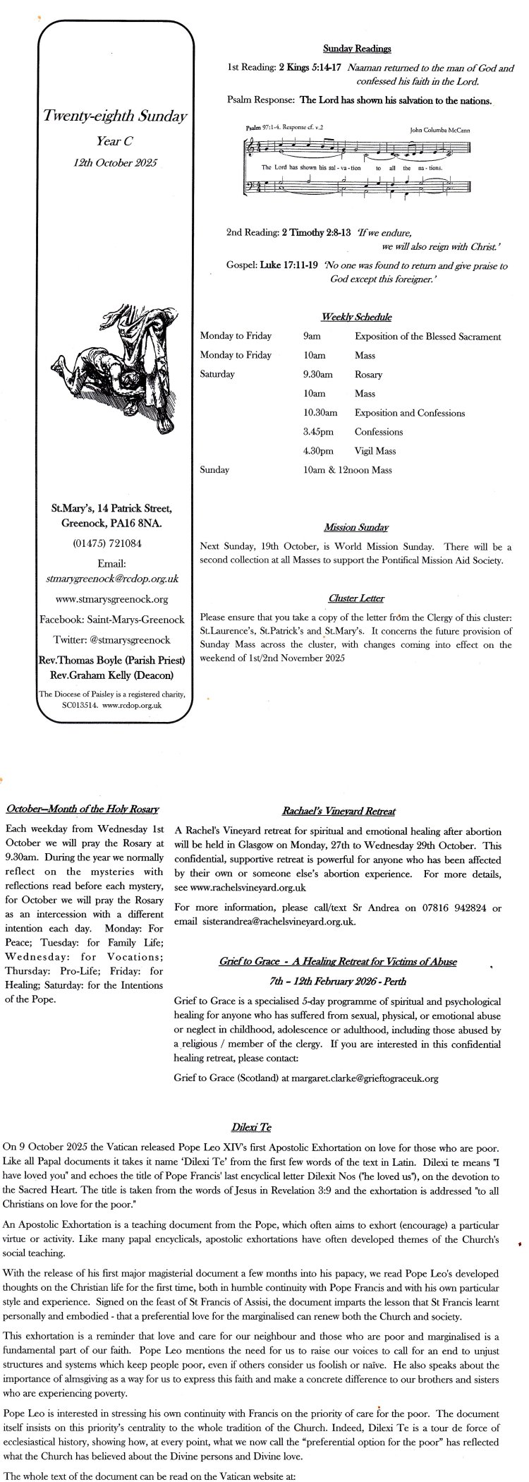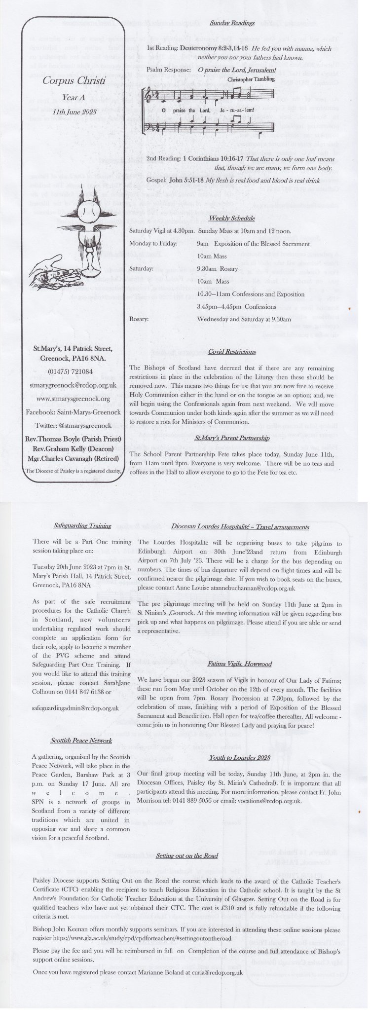 Click on one of the following to open the weekly bulletin. (Then if on a PC, use the tool to enlarge it if required).