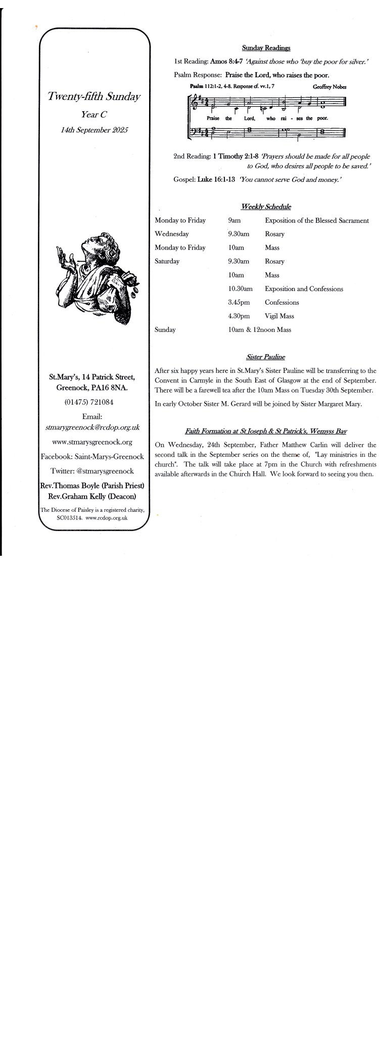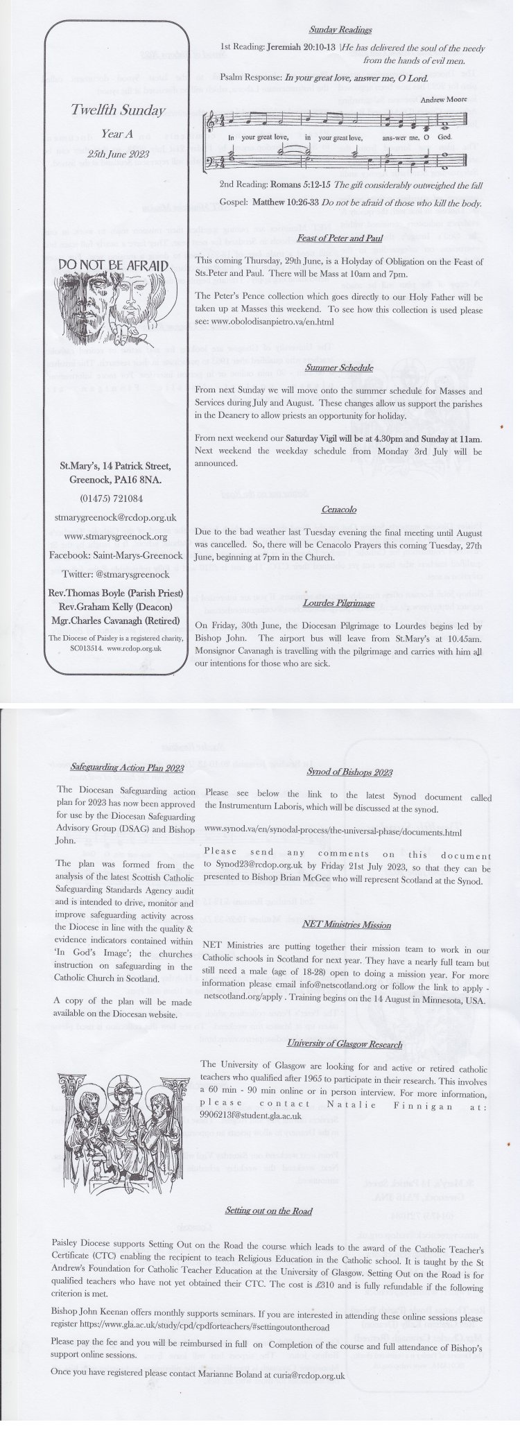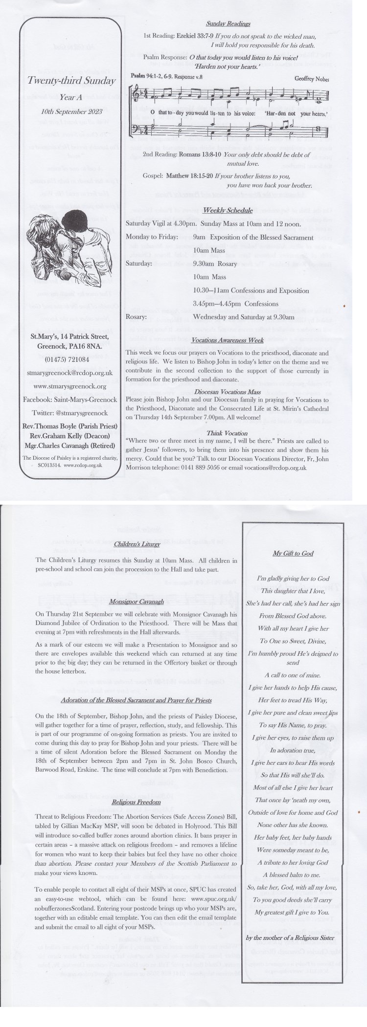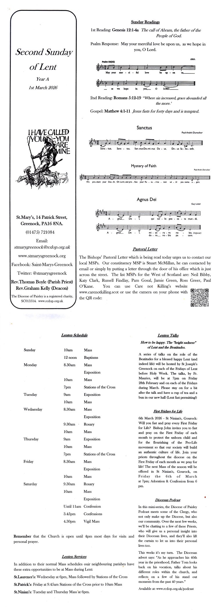 Click on one of the following to open the weekly bulletin. (Then if on a PC, use the tool to enlarge it if required).