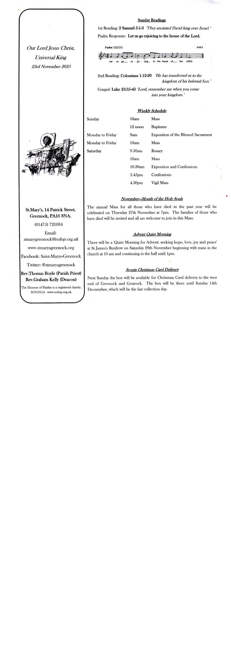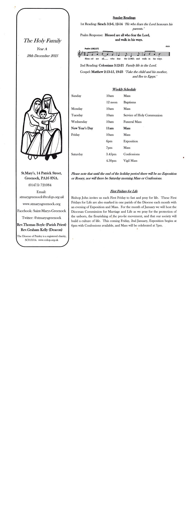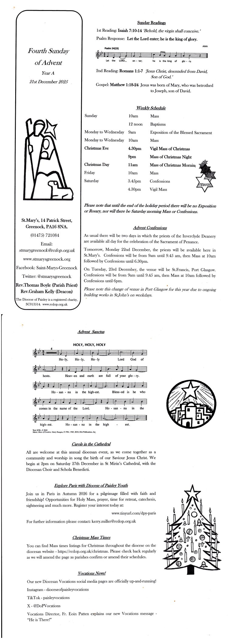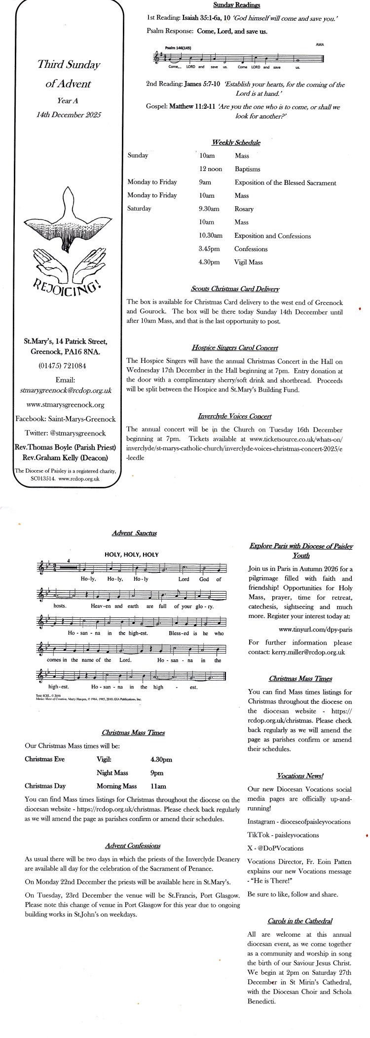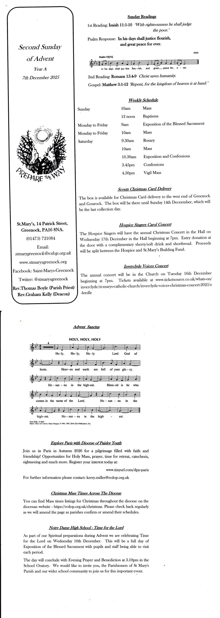 Click on one of the following to open the weekly bulletin. (Then if on a PC, use the tool to enlarge it if required).