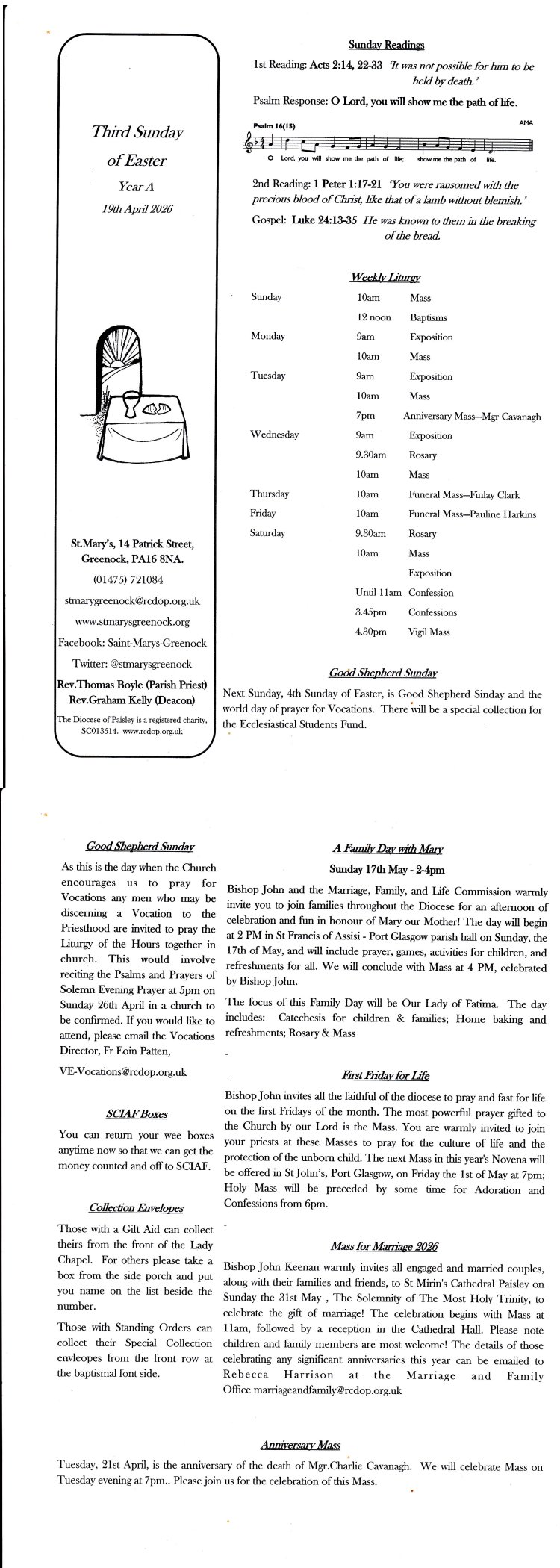 Click on one of the following to open the weekly bulletin. (Then if on a PC, use the tool to enlarge it if required).